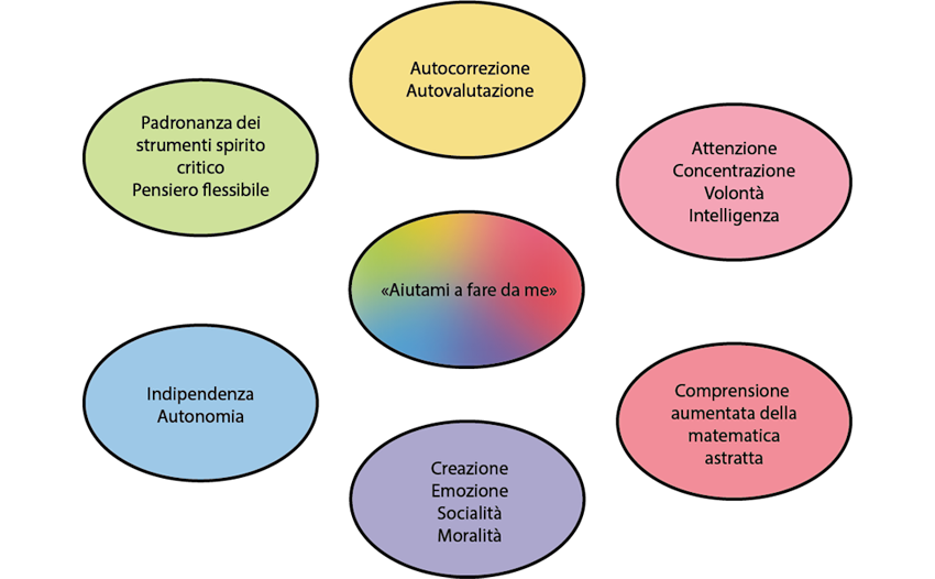 I benefici del metodo montessori sono molteplici come potete vedere nell'immagine sottostante, il bambino vuole essere sempre aiutato a fare da solo.